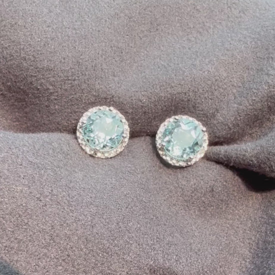 These beautiful baby blues have the look of a luxury. They're vibrant and clear. The diamond "illusion" halo only has enough diamonds to sparkle brightly in the light, the illusion is that the rest of the halo is highly polished sterling silver cut to look like diamonds. (WIIIIINK. We got you, girl.)